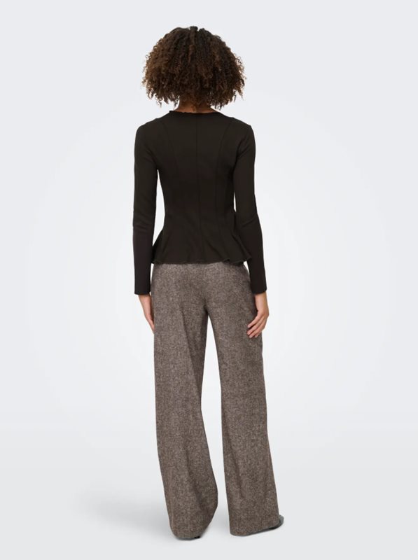 Elegant och feminin topp från ONLY med vacker peplum-siluett. Denna topp har en figurnära passform som framhäver midjan och avslutas med en lätt utsvängd fåll för ett smickrande fall. Tillverkad i ett mjukt och stretchigt material som ger både komfort och stil. Perfekt för både vardag och fest.