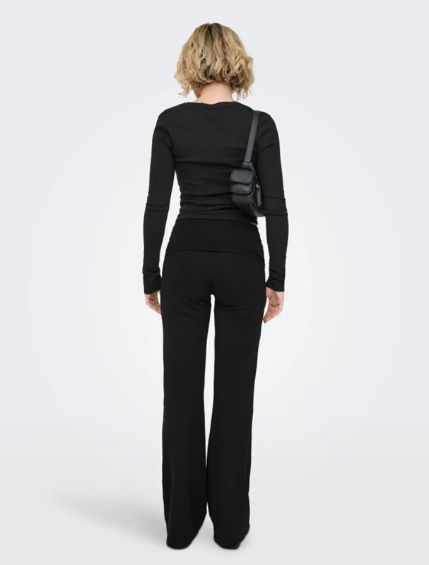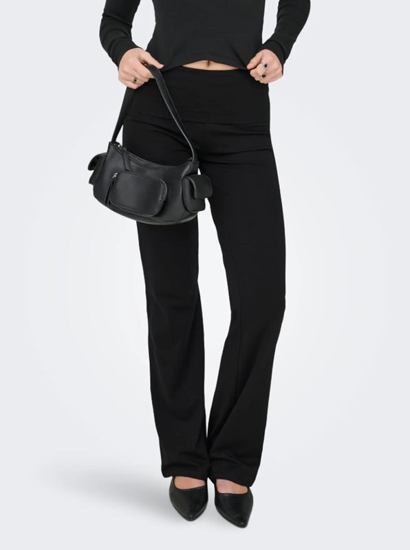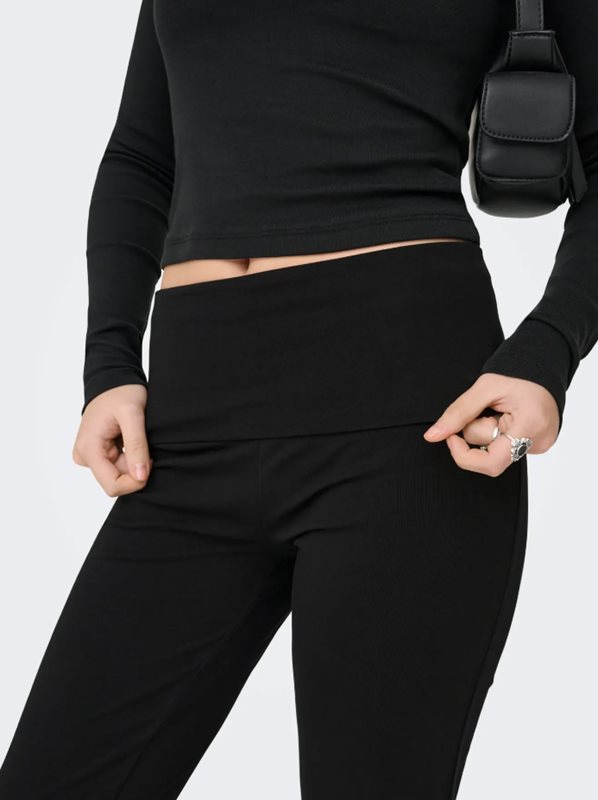 ONLKISS FOLD DOWN PANT är de perfekta byxorna för dig som söker en mjuk, bekväm och samtidigt trendig vardagsbyxa. Modellen har en bred, vikbar midja som både ger en smickrande passform och extra komfort. Den raka silhuetten med lätt utsvängd nederkant skapar en snygg och förlängande effekt – lika fin till vardagstoppar som till mer dressade plagg.