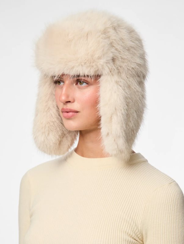 En trendig aviator-mössa i mjuk fuskpäls som håller dig varm med stil under kalla dagar. Den fluffiga designen med täckande öronlappar ger en både lyxig och funktionell look. Ett perfekt vinteraccessoar som kombinerar komfort och fashion.