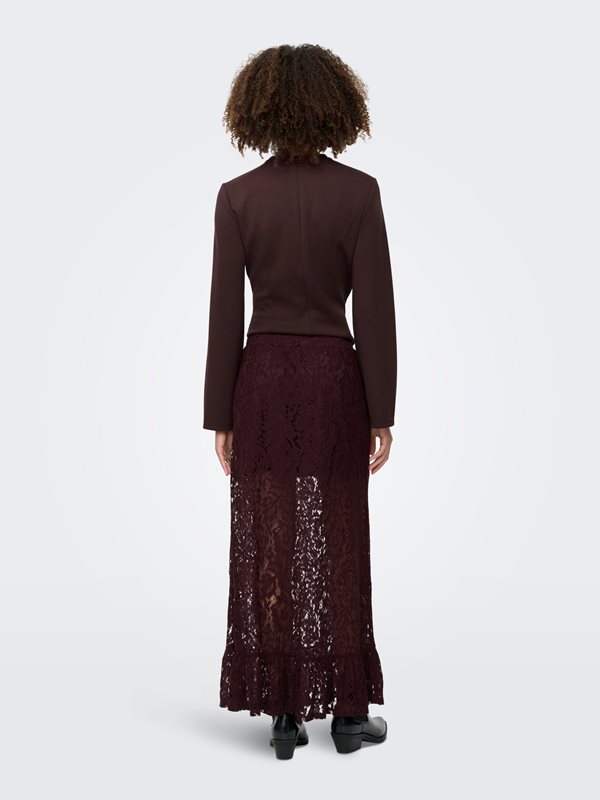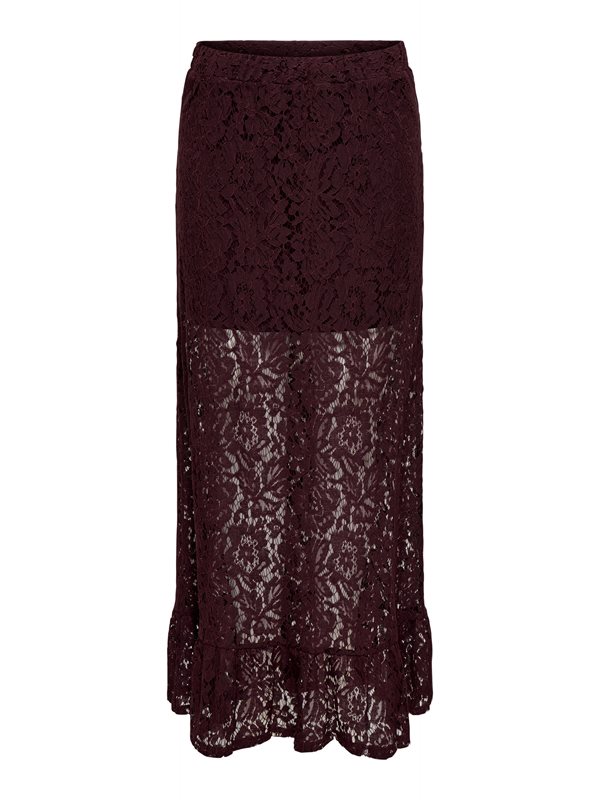 En elegant spetskjol med rak silhuett och volangkant nedtill. JDYJULIA har en mjuk resår i midjan och ett lätt fodrat parti som ger täckning upptill, medan den nedre delen är semitransparent för en feminin och luftig känsla. Perfekt att styla med en stickad tröja eller blus för både vardag och fest.