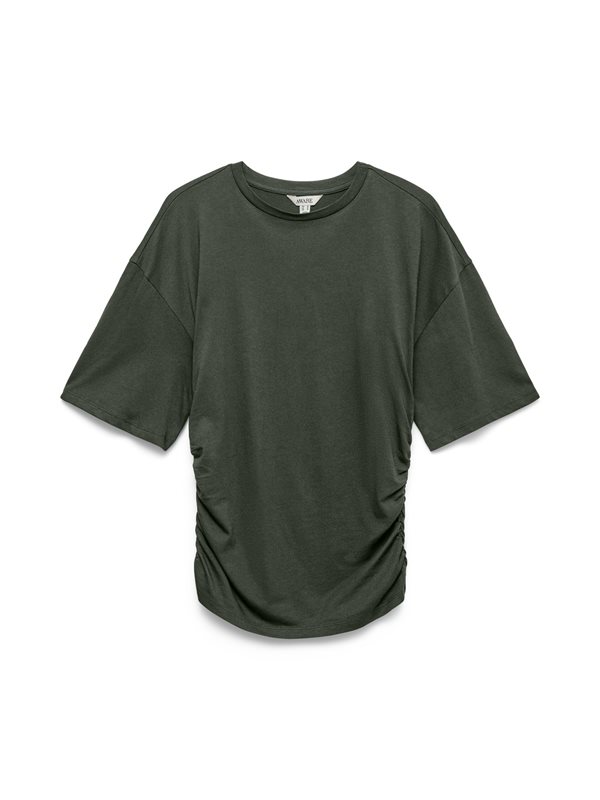En stilren topp med avslappnad passform och feminina detaljer. AWNAVARO har en klassisk rund halsringning och halvärm som ger en tidlös silhuett. Den subtila rynkningen i sidorna skapar en smickrande form och ger ett modernt uttryck.