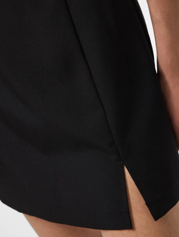 Kjolen har en snygg liten slits framtill som ger ett modernt och lätt sportigt intryck. Längden är kort och passar perfekt tillsammans med både sneakers och boots. Tack vare den återvunna polyesterblandningen är kjolen även ett mer hållbart val i garderoben.