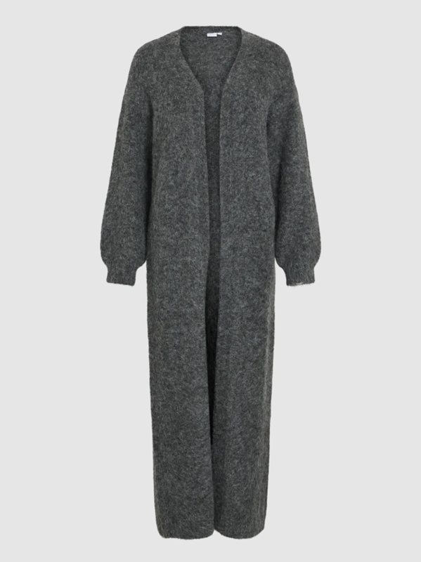 En lång, öppen stickad kofta från Vila – den perfekta kombinationen av värme och stil. Koftan har en rak, avslappnad passform med ballongärmar och en mjuk, fluffig struktur som gör den både mysig och elegant. Perfekt att bära över en klänning eller till jeans och t-shirt för en vardaglig men chic look.
